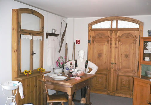 So auch die über 100 Jahre alte Tür in unserem Dorfmuseum, die sein Großvater im Jahr 1904 für die Familie Freudenstein (Freschsteens) anfertigte. Durch einen glücklichen Umstand wurde die Tür vor der 'Entsorgung' gerettet und landete schließlich für KuG im Jahr 2004 in der Werkstatt von Karl Degenhardt. Heute ist sie das Schmuckstück unseres Dorfmuseums. Sie ist fest eingebaut, funktioniert ohne quietschen und knarren und ist ein echtes Meisterwerk.